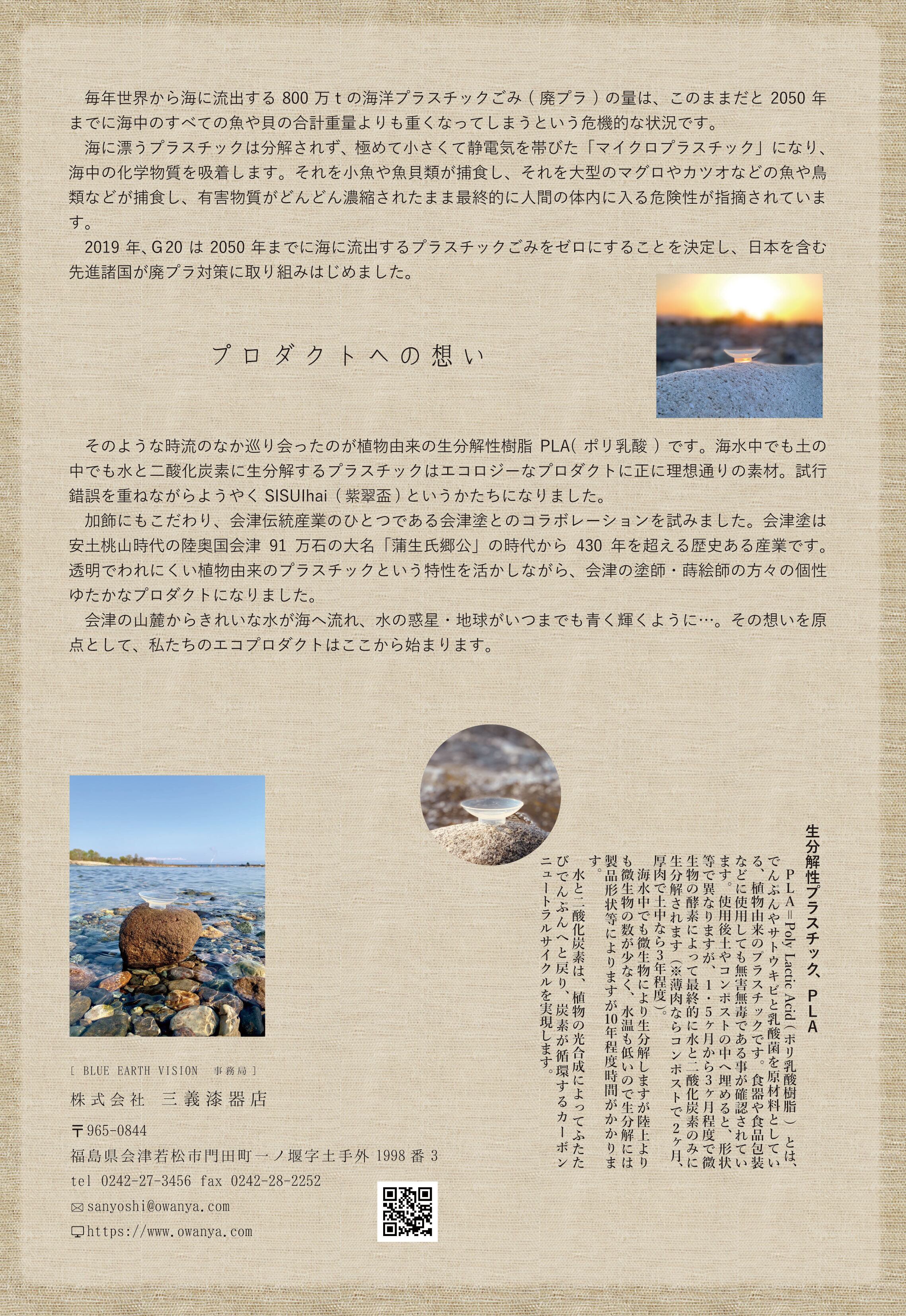 紫翠盃は、生分解性プラスチック(PLA)を使用しており、植物由来の素材で構成されています。ご使用後は土に還ることで環境への負荷を軽減し、持続可能な未来に貢献します。このプロダクトは、海でも土でも微生物によって生分解されるため、エコロジーに配慮した理想のアイテムです。